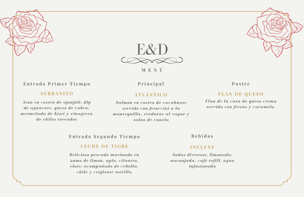 Este es el menú para el evento.